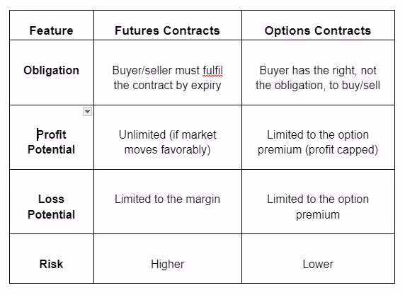 While both futures and options are derivative instruments, key differences exist: