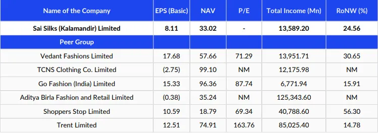 Sai Silks (Kalamandir) Limited is amongst the top retailers of ethnic apparel, particularly sarees, in south India. Through its four store formats, i.e., Kalamandir, VaraMahalakshmi Silks, Mandir, and KLM Fashion Mall as well as through e-commerce channels. It offers its products to various segments of the market including premium ethnic fashion, ethnic fashion for middle income, and value-fashion, with a variety of products across different price points, thereby catering to customers across all market segments.