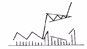 As the triangle forms, trading volume usually decreases. The pattern indicates that the price could break out in either direction when it reaches the apex.