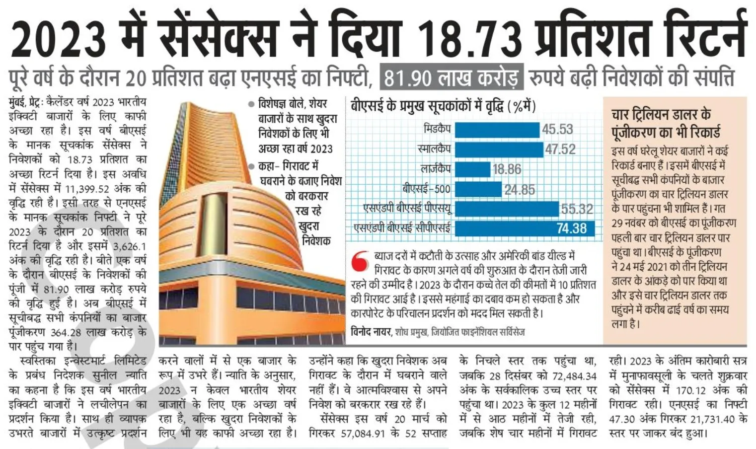 2023 में सेंसेक्स ने दिया 18.73 प्रतिशत रिटर्न
