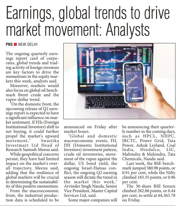 The market's stability may be influenced until the conclusion of state elections, at which point a dis- cernible trend might materialize," said Santosh Meena, Head of Research, Swastika Investmart Ltd.