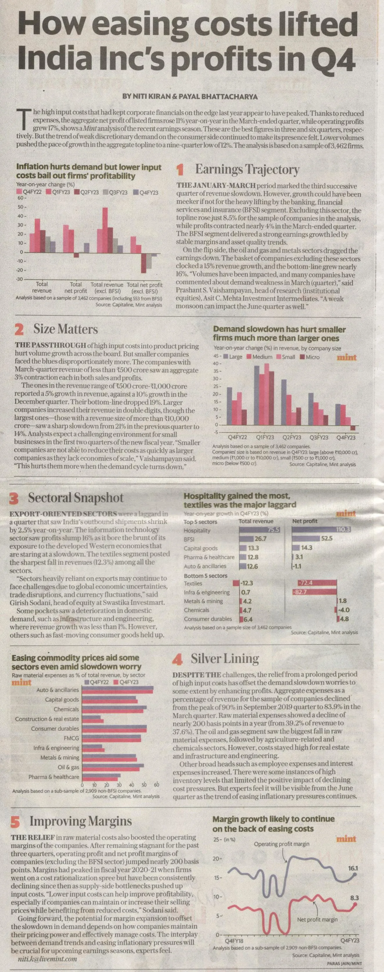 "Sectors heavily reliant on exports may continue to face challenges due to global economic uncertainties, trade disruptions, and currency fluctuations," said Girish Sodani, head of equity at Swastika Investmart. Some pockets saw a deterioration in domestic demand, such as infrastructure and engineering, where revenue growth was less than 1%. However, others such as fast-moving consumer goods held up.